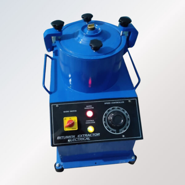 Built with a sturdy metal body and a high-speed electric motor, this equipment offers smooth and vibration-free operation. The machine is supplied with a removable aluminum bowl, safety cover, and precision control system to ensure operator safety and consistent performance. It conforms to IS: 13826, ASTM D2172, and other international standards for bitumen extraction testing.
