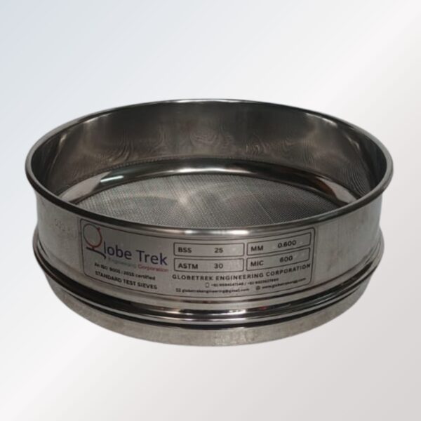 Globetrek SS Test Sieve – GT-507 can be manufacture in various Diameters like 4 Inches , 8 Inches , 12 Inches to 18 Inches and Mesh sizes will be from 4.75 to 25 micron .